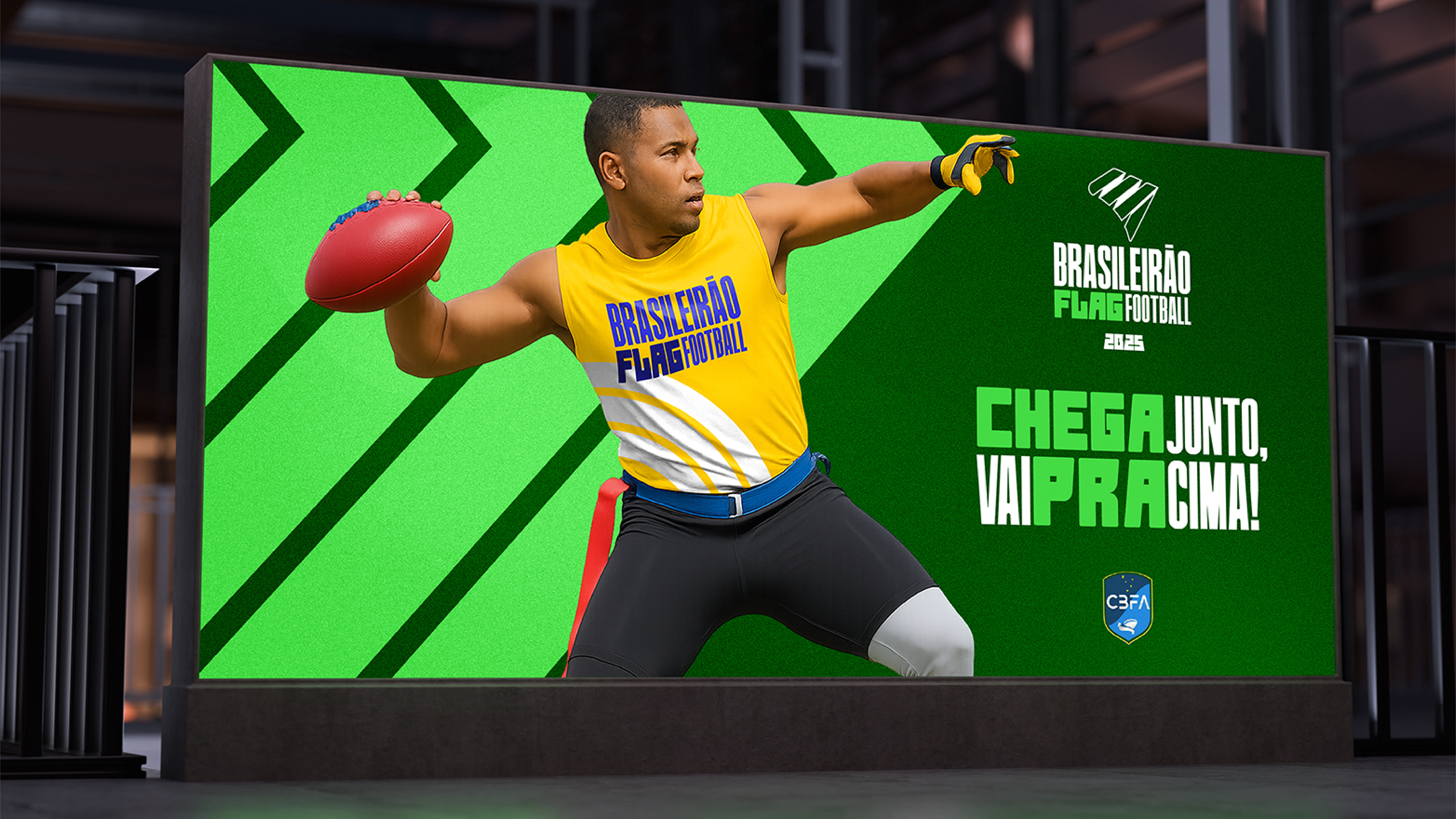 Tive o prazer de desenvolver a identidade visual do Brasileirão de Flag Football, um projeto que uniu movimento, inclusão e paixão pelo esporte em um sistema visual cheio de brasilidade.